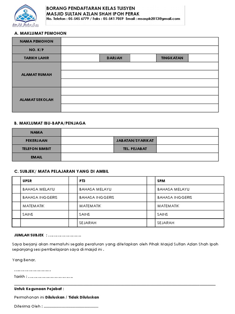 Borang pendaftaran olahraga. -- Contoh Borang Pendaftaran Pelajar Sekolah 10. Portal Pengemaskinian Pendidikan Terbaik di Dunia.